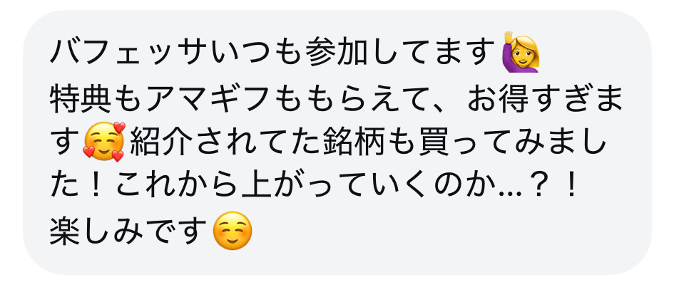実際に、バフェッサを見てGFS本講座に進んだ方も多いほど「有益すぎる」と話題です✨